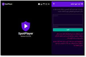 4- مرحله چهارم: بعد از نصب نسخه اسپات پلیر مربوطه بر روی دستگاه خود، کد کلید که بعد از خرید دوره در اختیارتان قرار گرفته را در کادر License، وارد نمایید (paste نمایید) و سپس تایید را بزنید.